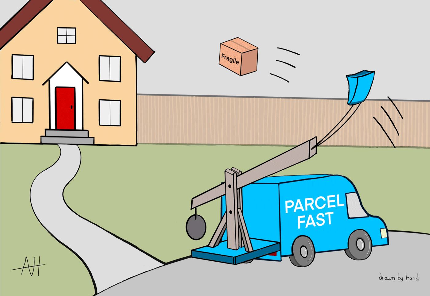 To improve delivery standards, courier companies will announce parcels will be delivered by trebuchet.