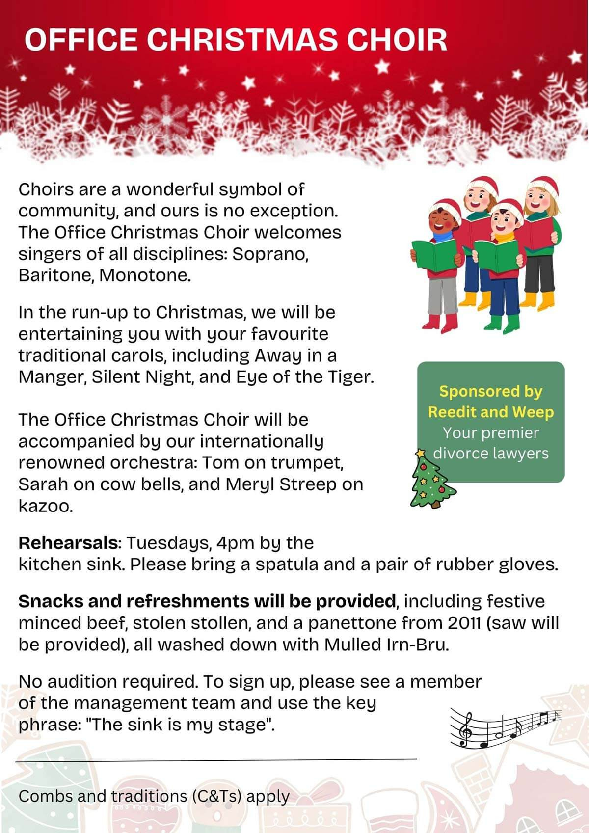 At Christmas, everyone seems to love singing songs about people called Carol. So, there seemed only one suitable course of action this year - to put together a choir. With my usual [poor] standard of creativity, I set to work on a poster...